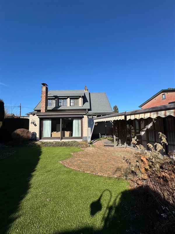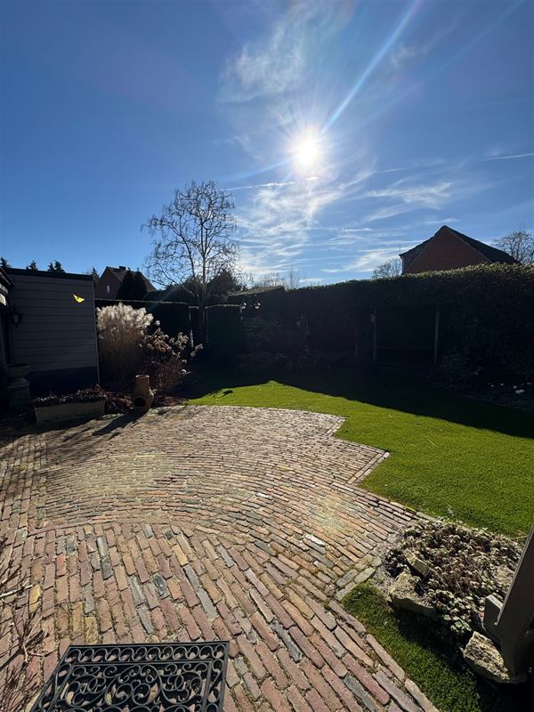 Aansluitend bevindt zich de gezellige veranda met grote raampartijen, waar u het hele jaar door kan genieten van een overvloed aan natuurlijk licht en een mooi zicht op de tuin.