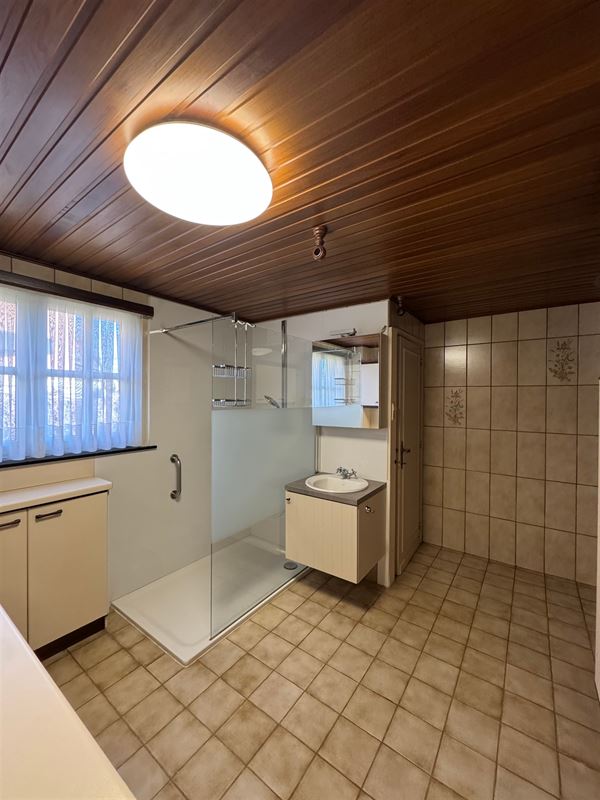 Verder vindt u op het gelijkvloers een badkamer uitgerust met een comfortabele inloopdouche, een apart gastentoilet, een praktische garage en een kelder die ideaal is als extra bergruimte of voorraadkelder.