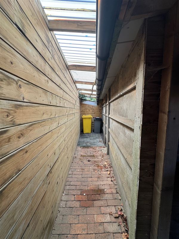 In de tuin bevindt zich een extra “huisje”, ideaal om gezellig samen te komen of te ontspannen, voorzien van een luifel langs de buitenzijde.