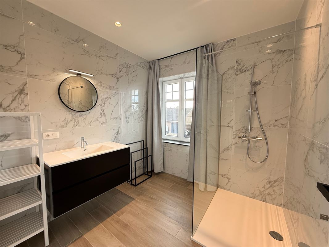 Een absolute troef is het zeer ruime terras, waar je in alle rust kan genieten van een prachtig open uitzicht. Achteraan het gebouw bevindt zich een handige carport met de mogelijkheid om een laadpaal aan te sluiten, ideaal voor wie elektrisch rijdt. Daarnaast is er ook een privatieve tuinberging inbegrepen, wat extra opslagruimte biedt.