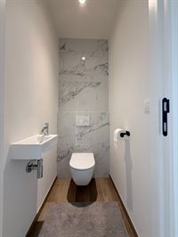 Bij het binnenkomen word je verwelkomd in een ruime inkomhal die toegang biedt tot een apart gastentoilet en de rest van het appartement.