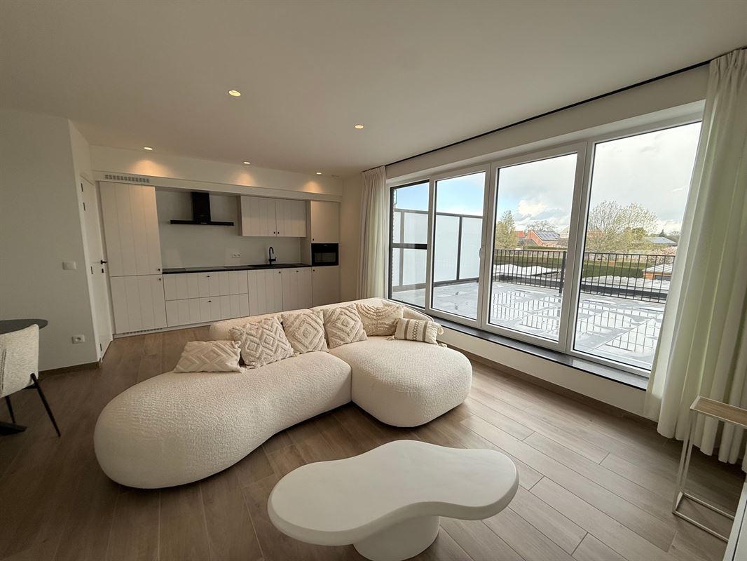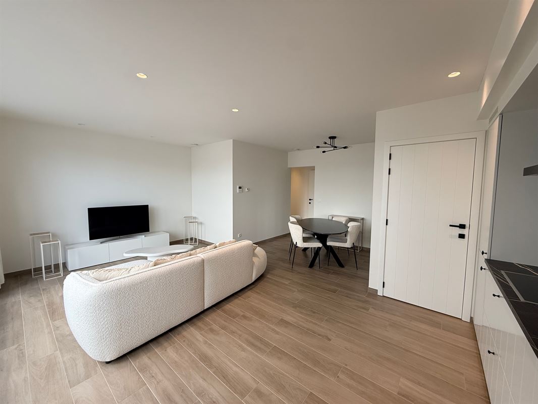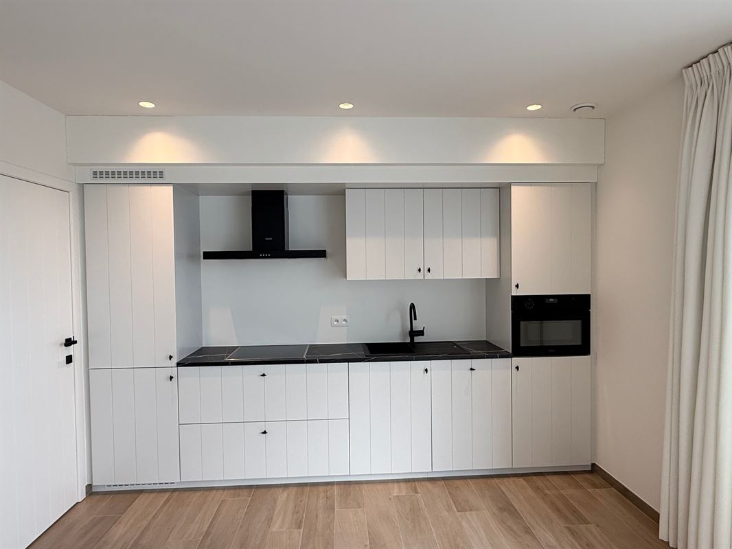 Verlichting en raamdecoratie zijn reeds aanwezig, waardoor het appartement volledig instapklaar is.