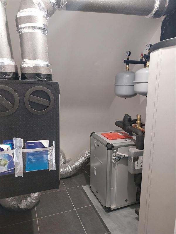 Tevens energiezuinige verwarming door middel van een geothermische warmtepomp. Ook op de slaapkamers is er vloerverwarming. Ventilatie D-systeem.