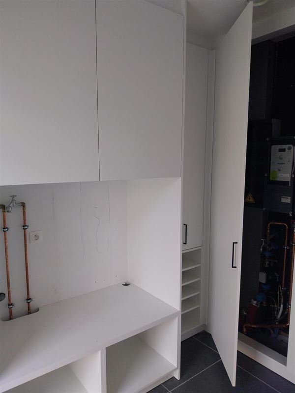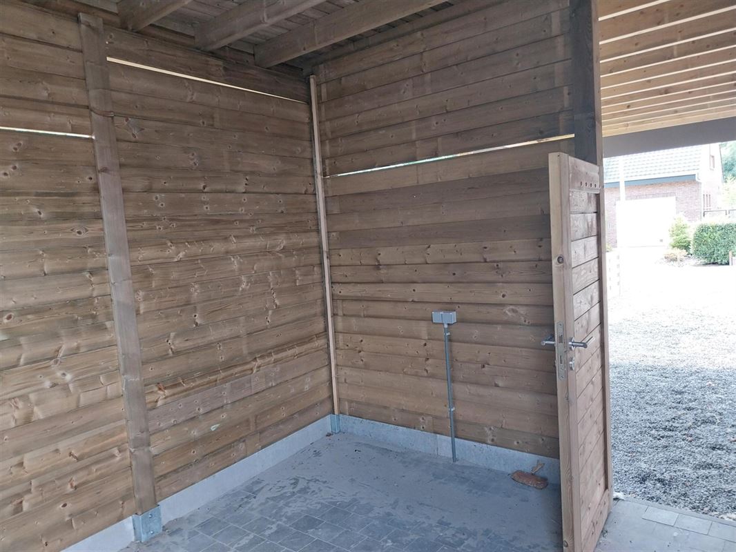 Verlichting met spots is voorzien in de meeste ruimtes, en met sensor in de carport en fietsenstalling.